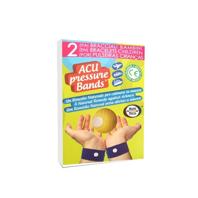 Bracciale per bambini che mira ad alleviare la nausea causata dal viaggio, dalla gravidanza, dall'anestesia o la chemioterapia attraverso la digitopressione del punto "P6" che si trova sulla superficie dell'avambraccio.