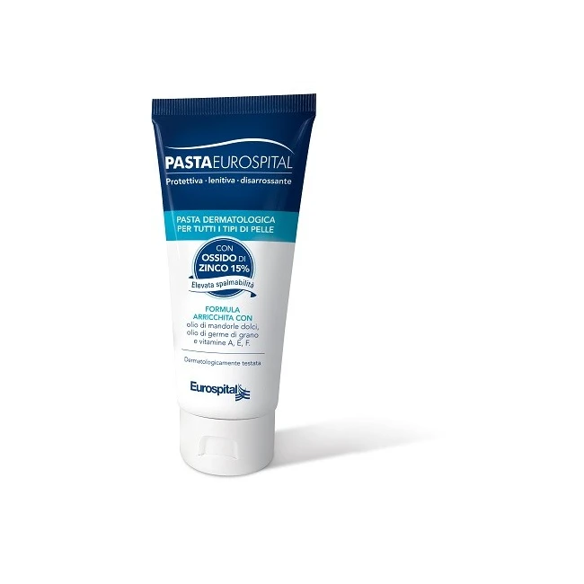 Protegge e dona sollievo immediato alla pelle irritata e arrossata. Grazie alla sua ricca composizione a base di ossido di zinco (15%), olio di mandorle dolci, olio di germe di grano, vitamine A, E, F ed allantoina, Pasta Eurospital: