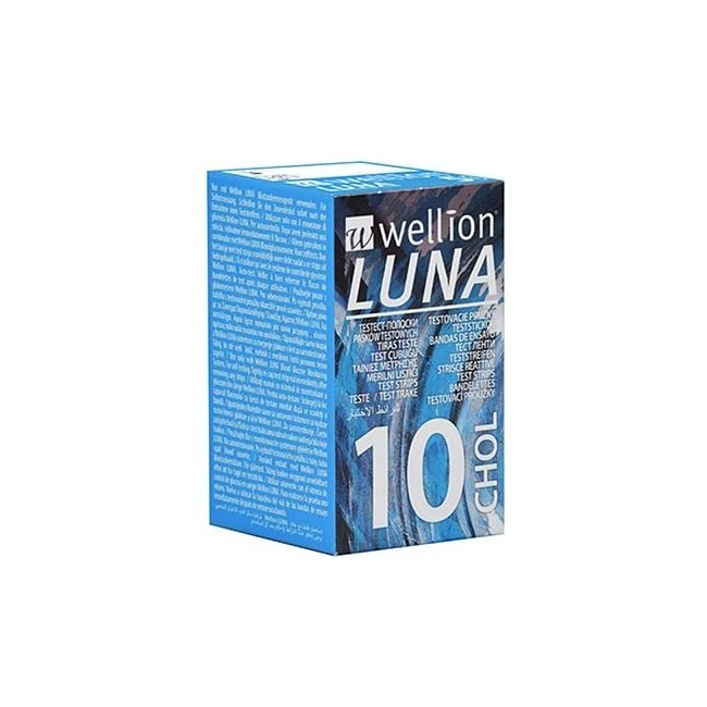 Le strisce di prova Wellion luna sono prodotti ad alta tecnologia. Le strisce sono state prodotte in diversi strati contenenti elettrodi che sono stati posizionati utilizzando una procedura sofisticata. Durante la misurazione viene prodotta una certa quantità di corrente che viene calcolata in un risultato di colesterolo visualizzato sullo schermo. Per la misurazione del colesterolo la tecnologia auto coding facilita la misurazione. L'estremità, dove il sangue viene aspirato nella zona di reazione con l'aiuto della tecnologia sip-in, ha una distanza sufficiente dal misuratore per evitare la contaminazione del misuratore con il sangue. Da utilizzare con il misuratore Wellion luna.