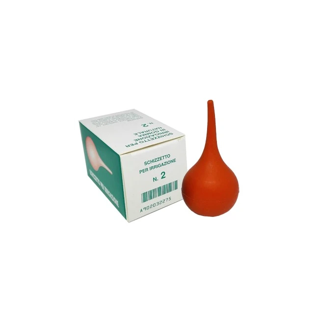 Schizzetto per irrigazione in gomma naturale. Per mantenere inalterata nel tempo l'efficienza di questo schizzetto, si consiglia di lavarlo dopo ogni uso con acqua e sapone nel caso di impiego di sostanze grasse. Sterilizzabile a 120°C.