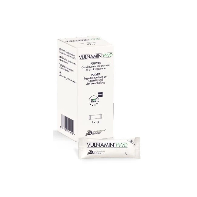 Dettagli Professional Dietetics Vulnamin Pwd Medicazione Interattiva In Polvere Di Sodio Jaluronato E Aminoacidi 2 Stick Pack