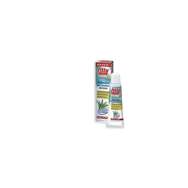 Pasta adesiva per protesi mobili con Aloe Vera e Mirra, a tripla azione. Antimicotica perchè crea una barriera contro le infiltrazioni di residui di cibo ed aiuta a proteggere le mucose dalla colonizzazione di funghi e batteri Antiinfiammatoria in caso di gengive irritate grazie all'effetto cuscinetto ed alle proprietà lenitive dell'Aloe Vera Fittydent Ultra 3 favorisce la regressione dell'infiammazione. Cicatrizzante in quanto coadiuva il processo di cicatrizzazione gengivale efficacemente, per una guarigione ancora più rapida. Inoltre la formula brevettata di Fittydent con due principi attivi garantisce una tenuta ed un'adesione straordinaria di 12 ore che da sicurezza a te ed al tuo sorriso.