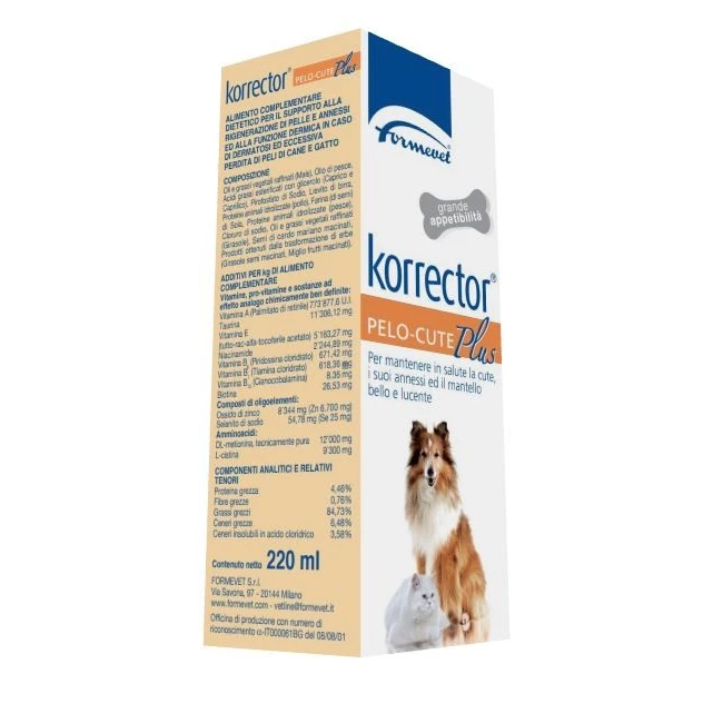 Agitare prima dell'uso. Riempire il misurino con Korrector Pelo-Cute Plus secondo le quantità giornaliere consigliate e versare nella ciotola del cane o del gatto mescolando con cura al cibo in essa contenuto. Può essere somministrato anche direttamente in bocca. Non superare le quantità consigliate.