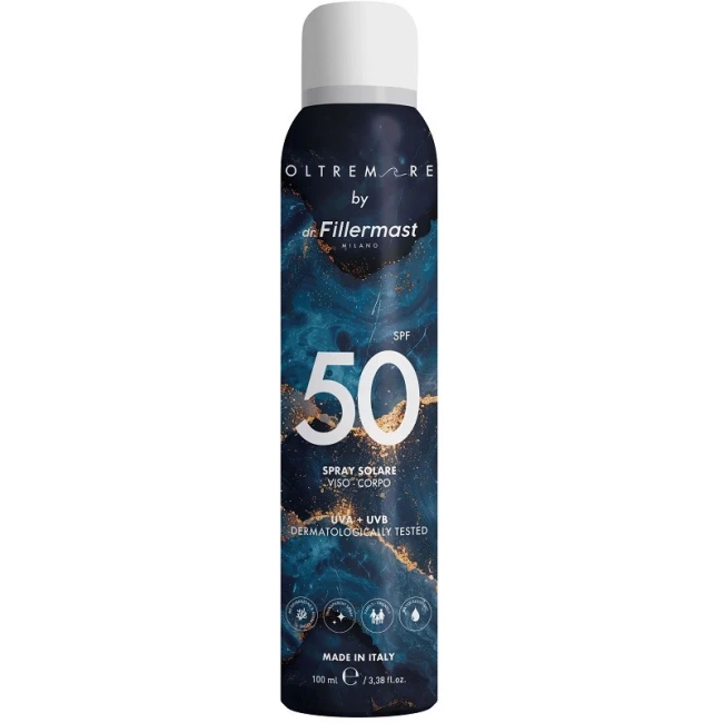 50 SPF Spray solare viso-corpo UVA+UVB.