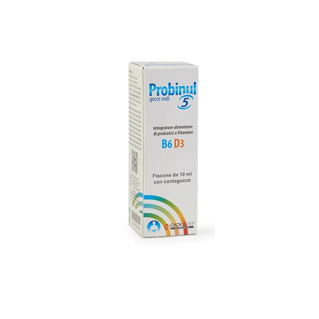 Integratore alimentare di probiotici, vitamina D e vitamina B6 indicato per fornire un apporto supplementare in caso di carenza o accresciuto fabbisogno e per favorire l'equilibrio della flora intestinale.