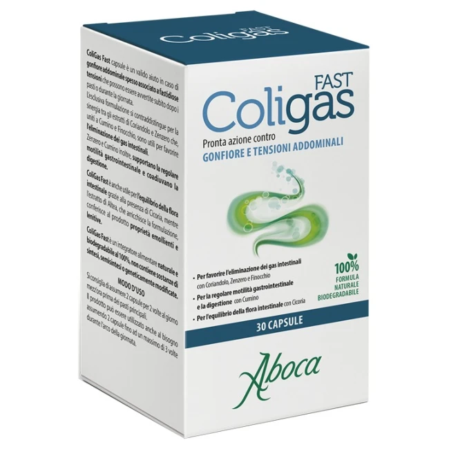 ColiGas Fast è un integratore alimentare naturale e biodegradabile al 100%, non contiene sostanze di sintesi, semisintesi o geneticamente modificate.