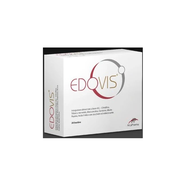 Edovis è un integratore alimentare a base di L-Citrullina, tribulus terrestris, maca andina, damiana, muira puama, acido folico con zucchero ed edulcorante.