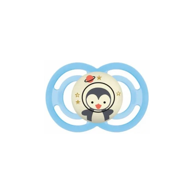 Ciuccio che si illumina al buio – facile da trovare grazie al bottone luminescente. Consente una chiusura più naturale della bocca. Ciuccio ortodontico progettato per ridurre il rischio di malocclusioni dentali.