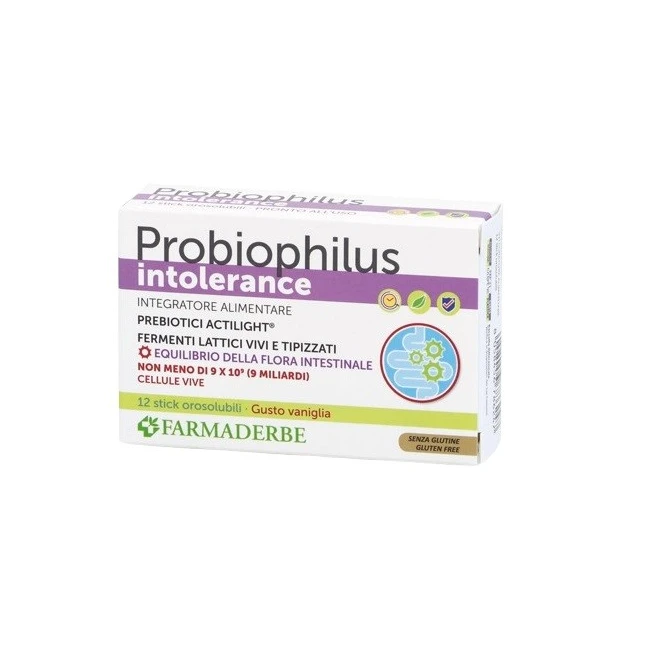 Dettagli Farmaderbe Probiophilus Intollerance 12 Stick Pack