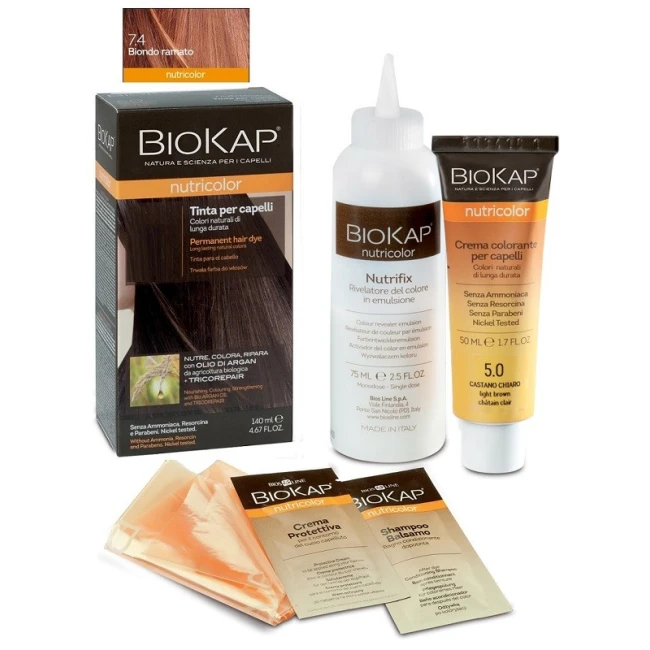 Dettagli Bios Line Biokap Nutricolor 7,4 New Biondo Ramato Tinta Tubo + Flacone