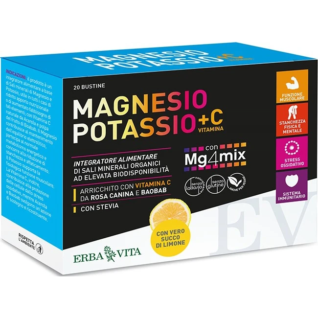 Erba Vita Magnesio Potassio +c Vitamina Gusto Limone 20 Bustine Da 3,8 G
