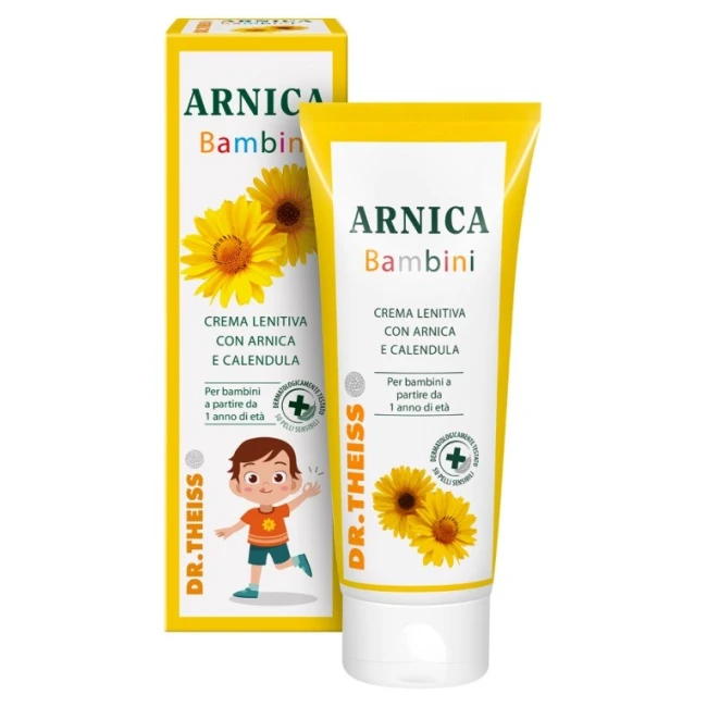 Crema arnica per la pelle del corpo particolarmente delicata dei bambini. La particolare combinazione di arnica, che lenisce la sensazione di fastidio e dona immediato sollievo, e calendula, da sempre conosciuta e utilizzata soprattutto per uso esterno, per la sua attività lenitiva, disarrossante e favorente i processi di rigenerazione.
