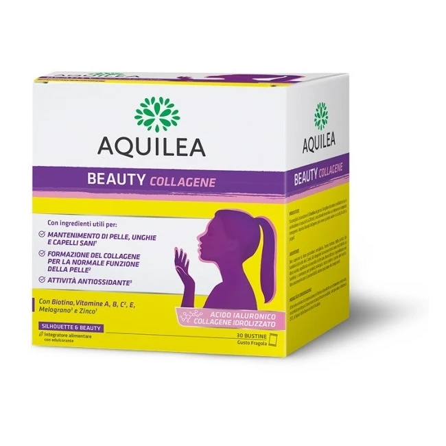 Si consiglia l'assunzione di 1 bustina al giorno. Sciogliere il contenuto della bustina in un bicchiere d'acqua (circa 200 ml), mescolando bene fino ad ottenere un composto omogeneo. Aquilea Beauty Collagene può essere gustato anche in succhi, frullati e yogurt.