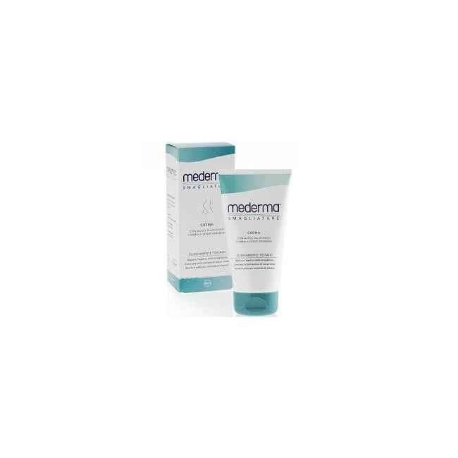 Mederma crema smagliature, con acido ialuronico, senza parabeni. Combina ingredienti vegetali e idratanti in una formulazione ricca e nutriente in grado di migliorare l'aspetto delle smagliature su addome, fianchi, cosce e seno. Il trattamento contribuisce a ristrutturare la matrice dermica attenuando le smagliature esistenti e contrastando la formazione di nuove strie. Aiuta a ridurre la colorazione rosso/violacea delle smagliature. Idrata, protegge e nutre la pelle in profondità rendendola più morbida ed elastica.Combina, in una formula unica, una miscela d'ingredienti naturali: