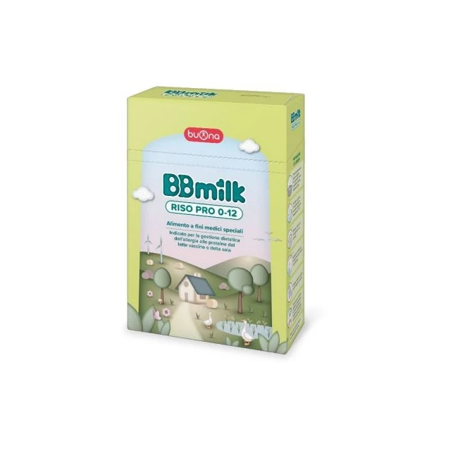 La formulazione di BBmilk RISO PRO 0-12 possiede un ridotto potere allergenico, in quanto la sua intera quota proteica è rappresentata esclusivamente da proteine di riso (origine UE e non UE) idrolizzate enzimaticamente, che favoriscono una migliore digeribilità e tollerabilità.