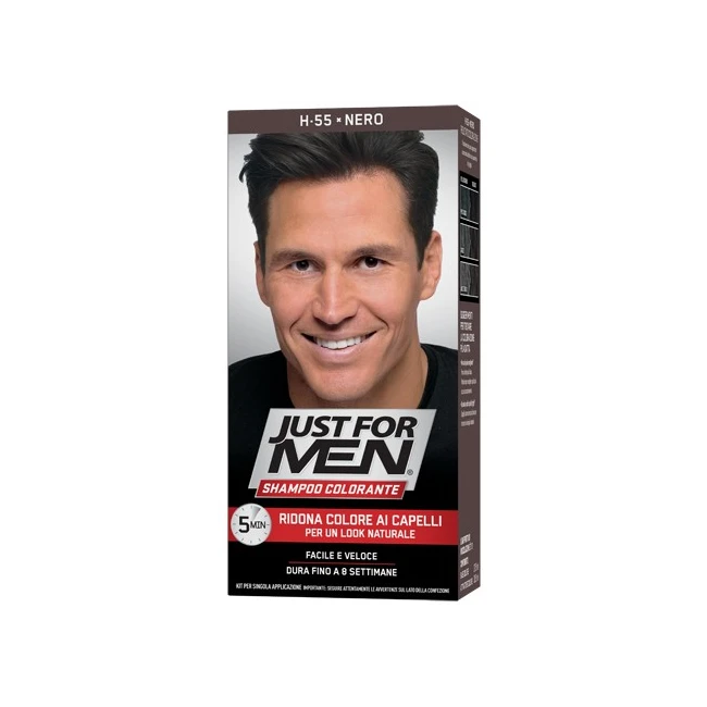 Combe Just For Men Shampoo Colorante H55 Nero Attivatore Chiaro 38,5 Ml + Base Colore 27,5 Ml