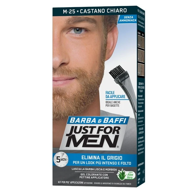 Just For Men Barba&Baffi M25 grazie alla sua formula penetra nei peli più resistenti e spessi del viso. Ammorbidisce mentre colora. Si armonizza al colore naturale dei capelli. Si consiglia di scegliere la colorazione più chiara per un look più naturale. Il prodotto è delicato sulla barba. Con Aloe vera e Camomilla. Senza ammoniaca. Non va via con il lavaggio e dura fino alla naturale ricrescita. La confezione contiene: