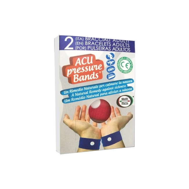 Bracciale per adulti che mira ad alleviare la nausea causata dal viaggio, dalla gravidanza, dall'anestesia o la chemioterapia attraverso la digitopressione del punto "P6" che si trova sulla superficie dell'avambraccio.