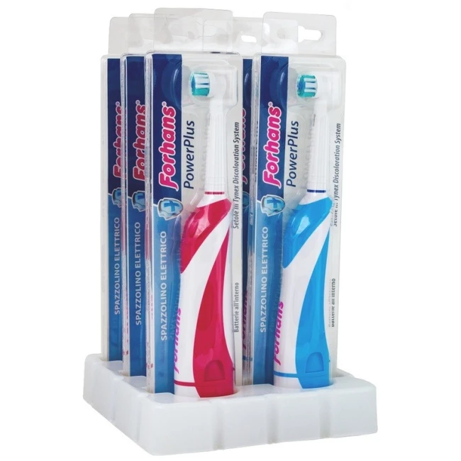 Spazzolino disponibile in due colori: rosso e blu. Batterie incluse; Spazzolini disponibili in una pratica basetta da banco. Garanzia di 6 mesi dalla data dello scontrino fiscale.