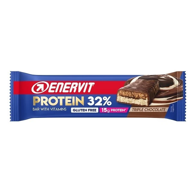 Enervit Sport Protein Bar 32% – Triple Chocolate è una barretta proteica pensata per supportare la crescita e il mantenimento della massa muscolare, con circa 15 g di proteine ad alta qualità (derivate da latte e soia) e senza glutine né olio di palma.