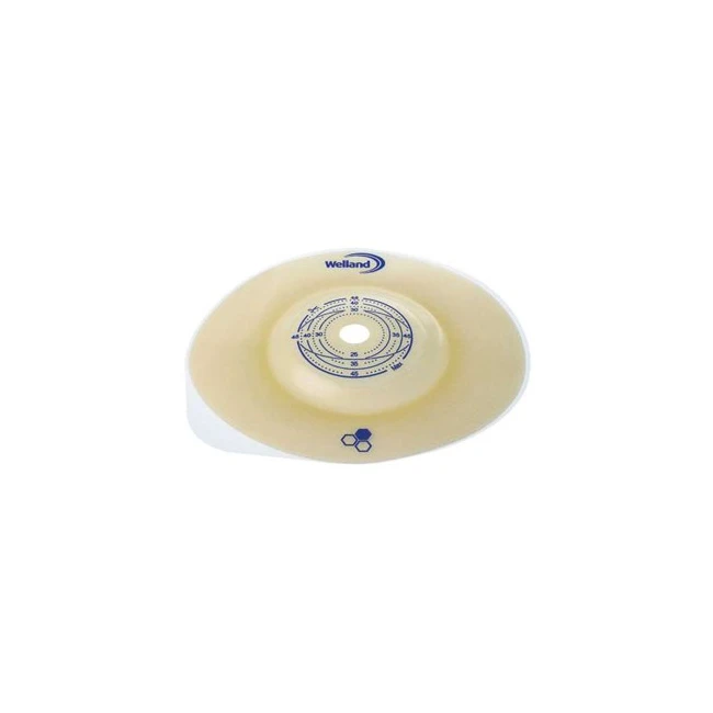 Placca convessa con flangia per colostomia ed ileostomia sistema a due pezzi, dotata di barriera protettiva autoportante con miele di Manuka.