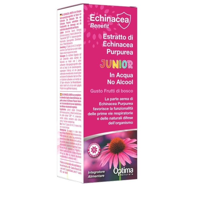 Integratore alimentare a base di Echinacea purpurea (estratto da pianta intera) in acqua purificata, utile per il benessere delle vie respiratorie e il sostegno delle naturali difese dell'organismo.