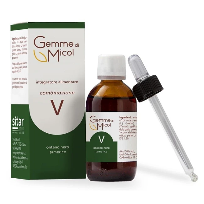 Integratore alimentare a base di estratti idrogliceralcolici di ontano nero e tamerice. Gli estratti sono ottenuti a partire dalla lavorazione di parti pianta fresca.