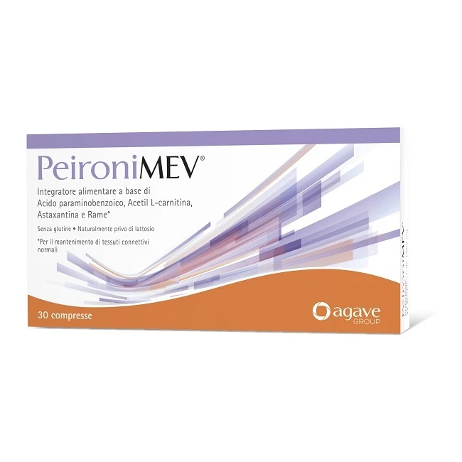 Integratore alimentare a base di acido paraminobenzoico, acetil L-carnitina, astaxantina e rame. PeironiMEV è indicato in tutti i casi di insuffieciente apporto nella dieta o aumentato fabbisogno di tali nutrienti. Il rame contribuisce al mantenimento di tessuti connettivi normali e alla protezione delle cellule dallo stress ossidativo.