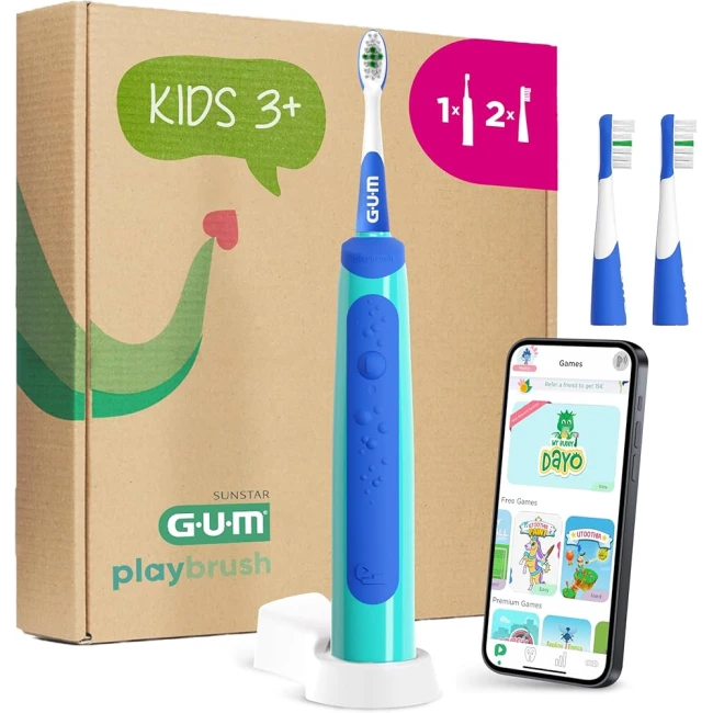 Lo spazzolino elettrico sonico GUM Playbrush Kids 3+ Blu è progettato per bambini a partire dai 3 anni, con l’obiettivo di rendere l’igiene orale quotidiana divertente, efficace e motivante. Grazie alla connessione Bluetooth con l’app dedicata, al coach virtuale, ai giochi interattivi e al sensore di pressione, trasforma il momento dello spazzolamento in un’esperienza piacevole e formativa.