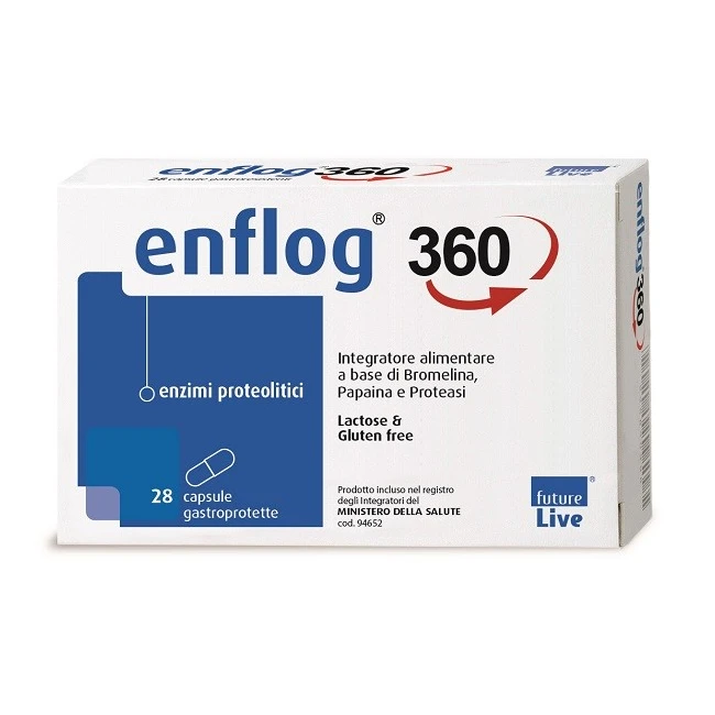 Integratore alimentare a base del complesso enzimatico costituito dagli enzimi proteolitici bromelina, papaina e proteasi da fungo (Aspergillus oryzae). Ogni capsula apporta un totale di 360 mg dei tre enzimi.