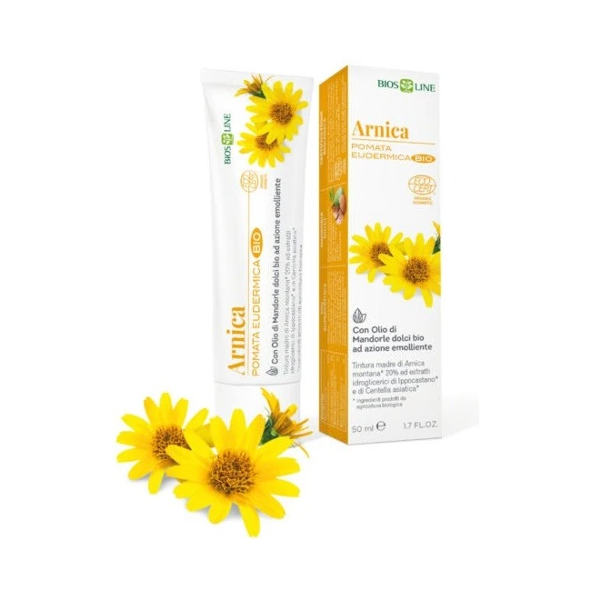 Pomata ad elevato potere lenitivo a base di tintura madre di Arnica montana bio (20%), estratti idroglicerici di Ippocastano bio e Centella asiatica bio, olio di Girasole bio e con un particolare olio di Mandorle dolci bio titolato in β-sitosterolo. La Pomata Eudermica Bio Arnica è una soluzione indicata per il massaggio in caso di fastidi localizzati.