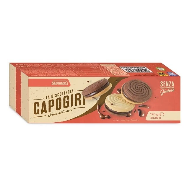Biscotti con crema cacao senza glutine, specificamente formulati per persone intolleranti al glutine.