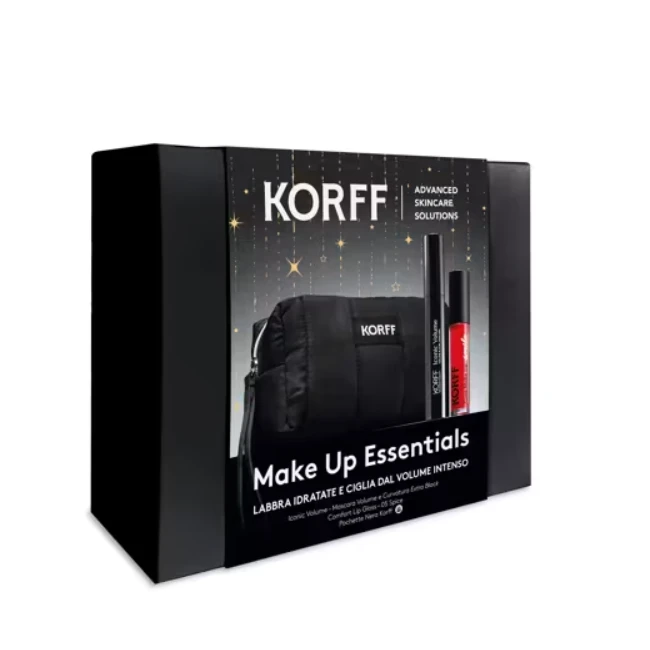 Korff Make Up Essentials Iconic Volume Mascara + Comfort Lip Gloss 05 è un cofanetto make-up pratico ed elegante per uno sguardo intenso e labbra perfette.