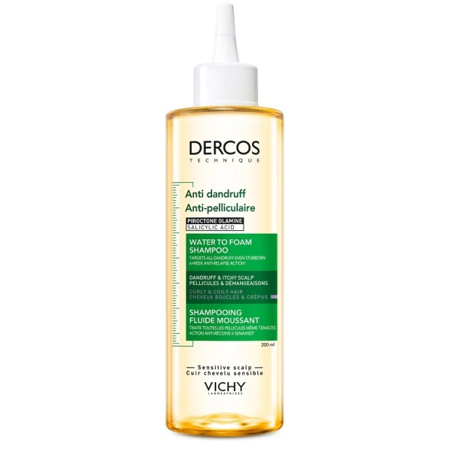 La 1° tecnologia anti-forfora di Dercos per capelli ricci e crespi. La sua formula innovativa con piroctone olamina e acido salicilico e arricchita con il 10% di glicerina per eliminare la forfora agendo delicatamente sui ricci. Il suo preciso applicatore a punta permette un'applicazione ciocca per ciocca. La texture acquosa raggiunge immediatamente il cuoio capelluto e si trasforma in una schiuma leggera.