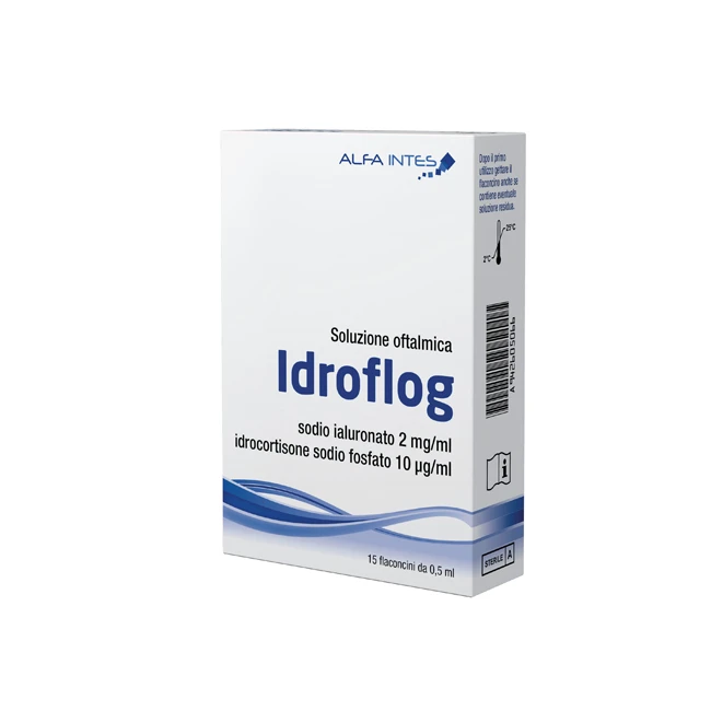 Soluzione oftalmica idroflog a base di ialuronato di sodio e idrocortisone sodio fosfato 15 flaconcini da 0,5 ml