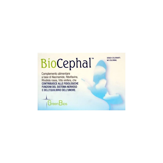 Integratore alimentare a base di nicotinamide, Riboflavina, Rhodiola rosea, Vitis vinifera in grado di contrastare alcuni meccanismi biochimici che sono alla base di malattie reattive come la cefalea, le nevralgie e la dismenorrea legate alla produzione incontrollata di mediatori della trasmissione nervosa. L'attività antiossidante potente della Rhodiola rosea e della Vitis vinifera stabilizza ulteriormente la produzione dei neurotrasmettitori, contrastando i radicali liberi che danneggiano le cellule cerebrali. L'assunzione di Biocephal permette di mantenere i livelli ottimali dei nutrienti necessari per il funzionamento fisiologico di questi complessi sistemi biochimici. La Rhodiola rosea agisce inoltre come tonico adattogeno, migliorando il tono dell'umore.