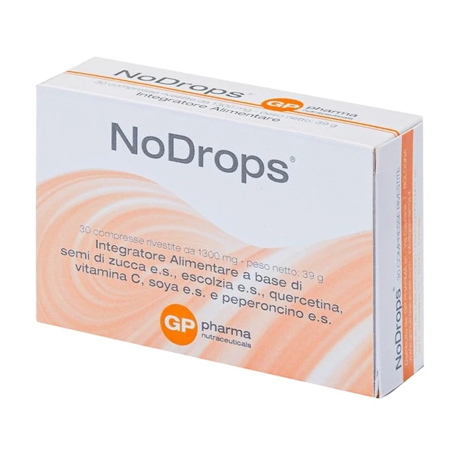 NoDrops di GP pharma è un integratore alimentare costituito da una miscela composta da isoflavoni di soia, semi di zucca, escolzia titolata allo 0,2% in... Leggi di più