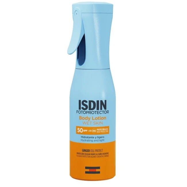 Fotoprotettore corpo leggero in spray che idrata intensamente la pelle. Il suo dffiusore spray fornisce un'applicazione localizzata, facile e comoda, senza residui grassi. Contiene GINGER CELL PROTECT che ore protezione cellulare contro i danni ossidativi causati dal sole. Idratante e leggero. Resistente all'acqua. Assorbimento ed asciugatura immediati. Adatto per l'applicazione sulla pelle umida (WET SKIN). Mineral Oil-free. Adatto a pelle sensibile e atopica. Dermatologicamente testato. Protezione solare. Protezione UVB e UVA. Protezione alta. SPF (Sun Protection Factor) 50 (metodo ISO).