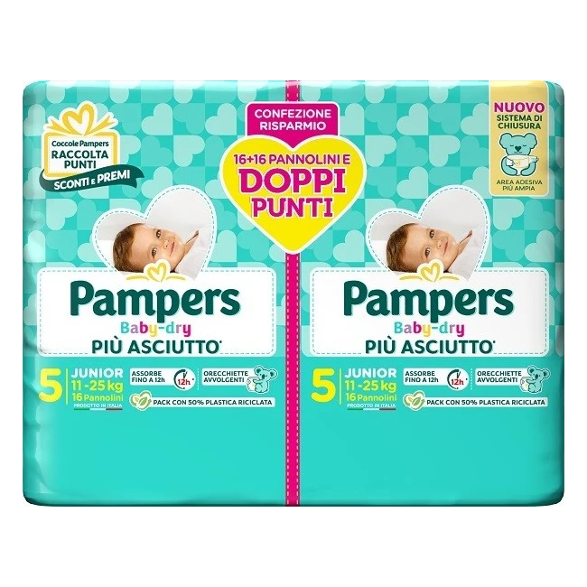 Dettagli Fater Pampers Baby Dry Pannolino Duo Downcount Junior 32 Pezzi