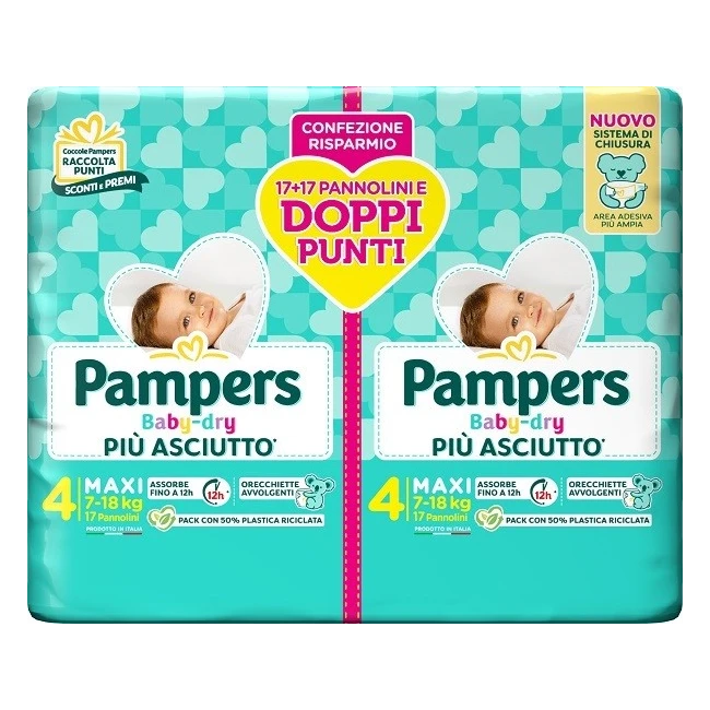 Dettagli Fater Pampers Baby Dry Pannolino Duo Downcount Maxi 34 Pezzi