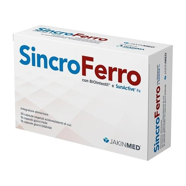 La posologia di SincroFerro è di 1 capsula vegetale acidoresistente al giorno, da ingerire secondo il seguente schema: 1 capsula di “SincroFerro GIORNI PARI” nei giorni pari del mese (2, 4, 6, 8);