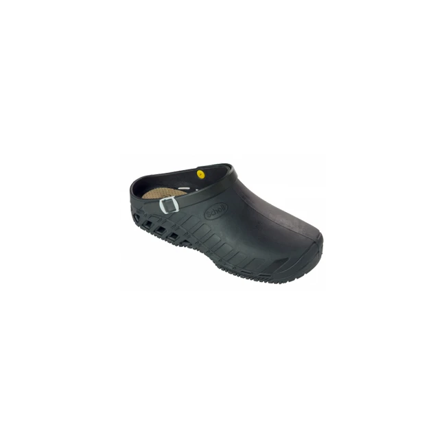 È leggero e flessibile, la tomaia con cinturino è realizzata interamente in TPR. Il modello è autoclavabile, antistatico e resistente allo scivolamento.