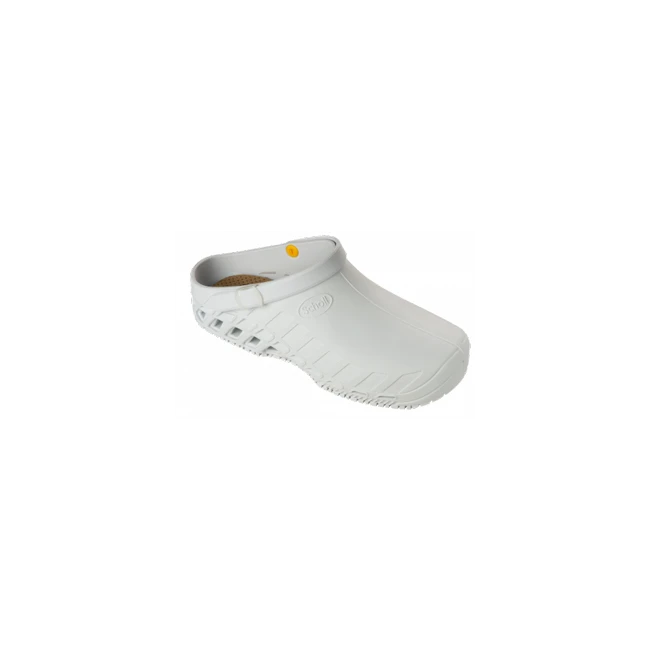 È leggero e flessibile, la tomaia con cinturino è realizzata interamente in TPR. Il modello è autoclavabile, antistatico e resistente allo scivolamento.